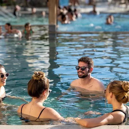 The accommodation provides an aqua park and an outdoor swimming pool for an additional fee. It has an outdoor swimming pool along with a thermal pool, a steam room, and hot public baths.