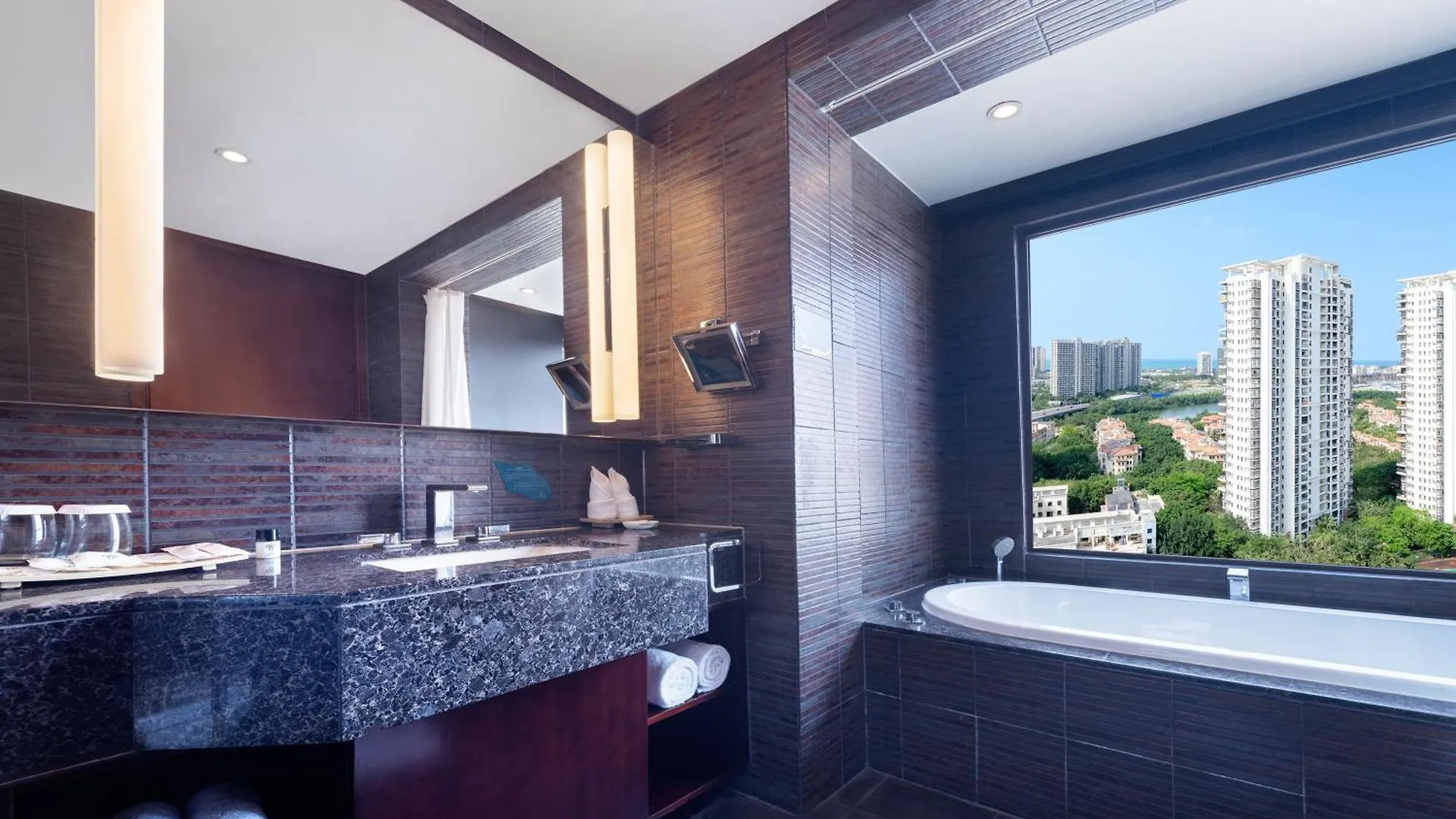 Some of the 761 air-conditioned rooms at Mangrove Tree Resort World Sanya Bay-Kapok are furnished with a sofa set and a writing desk, and appointed with a mini-fridge-bar and coffee/tea makers. Guests can use a hot tub and a separate toilet together with a hairdryer and bath sheets. Certain units overlook the city.