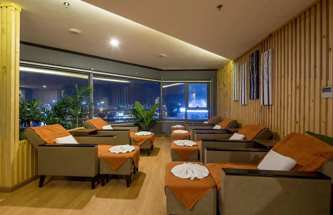 Looking onto the city, some rooms at the Val Soleil Da Nang offer sound-proofed windows furnished with a sofa set and a work desk. Guests will appreciate blackout drapes and climate control, and relax with free Wi-Fi and a flat-screen TV with satellite channels. For more comfort, a hairdryer and shower caps, along with a sauna and a rainfall shower, are provided.